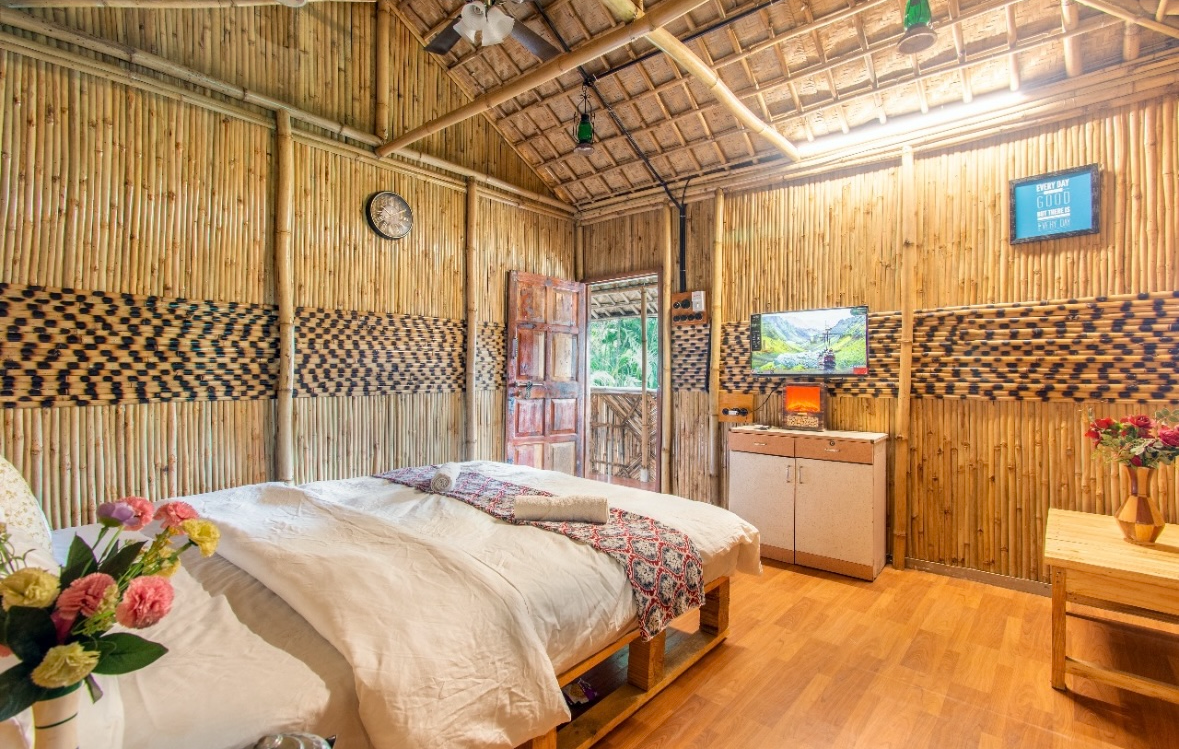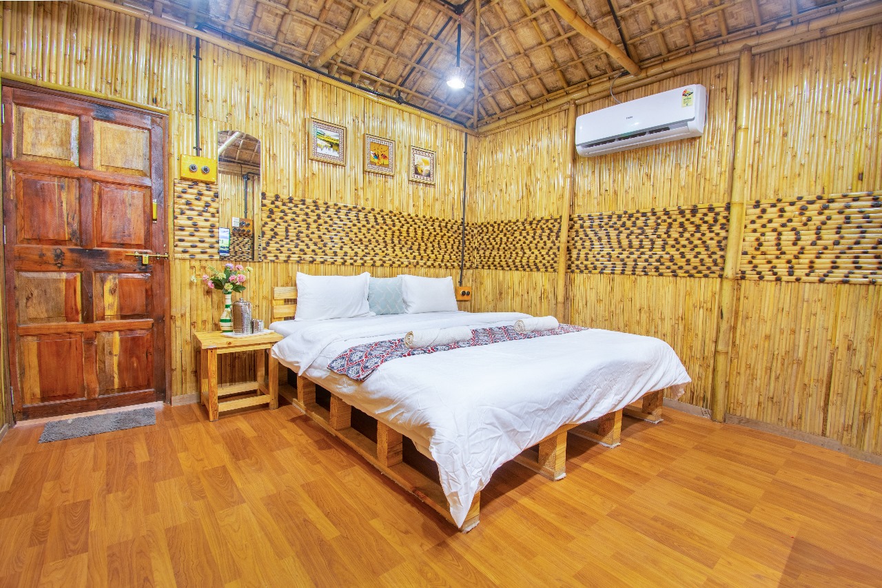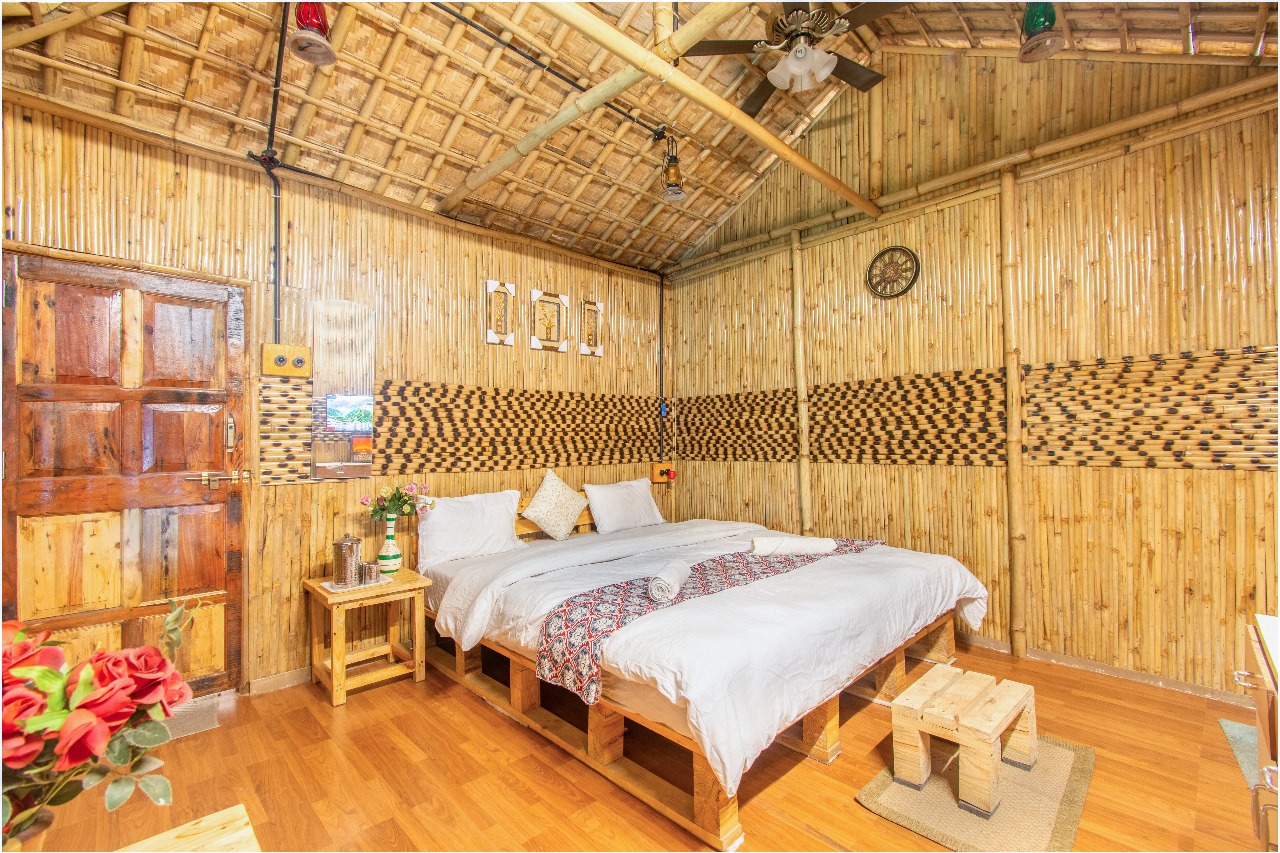 A warm, cozy bamboo stay designed for couples and small families. Enjoy calming bamboo interiors, soft lighting, mountain-facing windows, and a peaceful environment surrounded by nature.