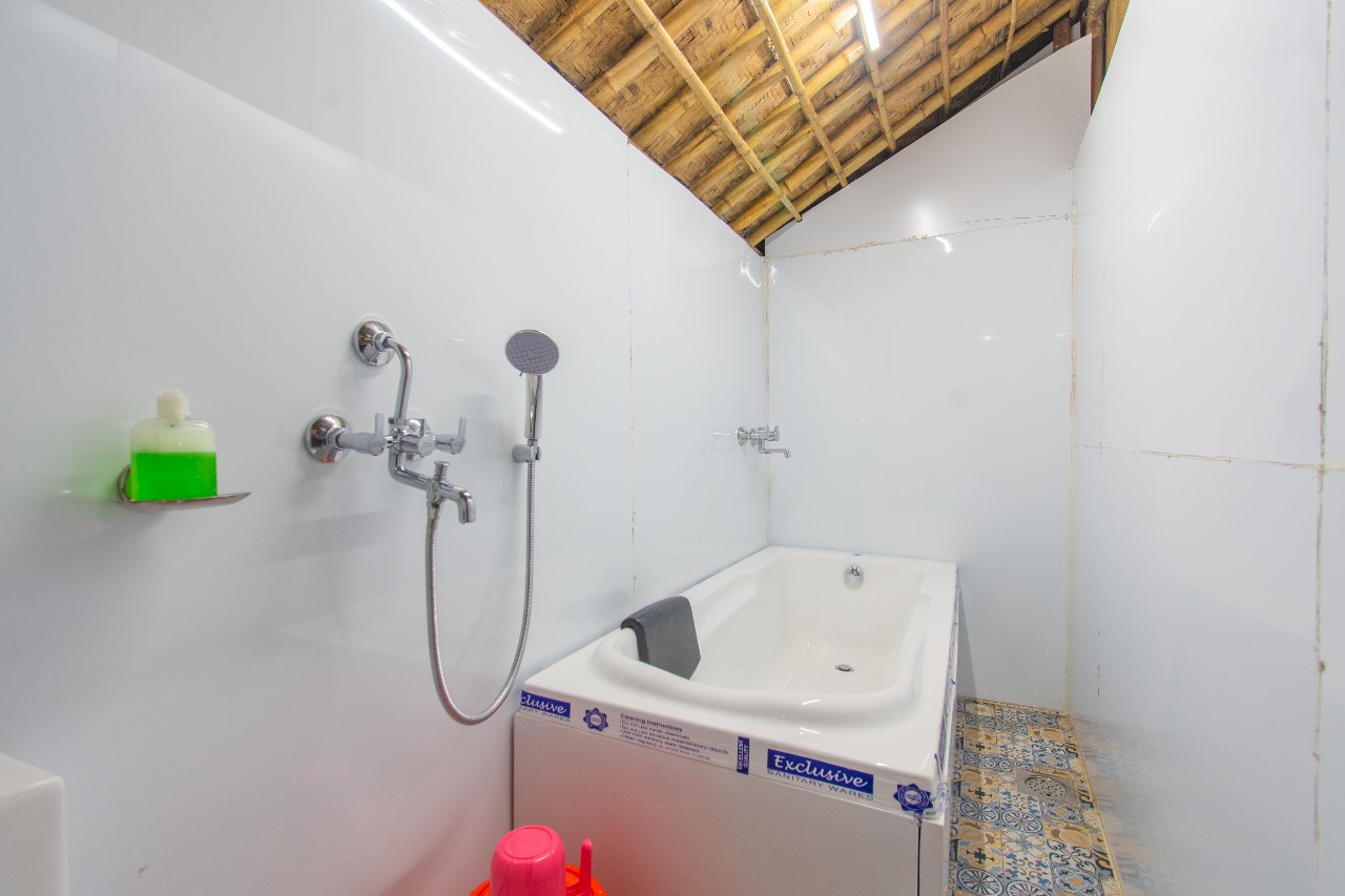 Ideal for those looking for a relaxing and unique stay experience. This bamboo house includes an indoor bathtub, cozy bamboo interiors, serene natural views, and a comfortable space perfect for unwinding.